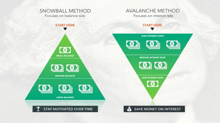 Anda langsaikan dahulu hutang-hutang yang mempunyai kadar faedah yang tinggi seperti kad kredit dan hutang peribadi. Avalanche adalah teknik paling efisyen dan jimat dari sudut kira-kira. Jimat di sini bermaksud anda dapat kurangkan bayaran faedah yang tinggi.