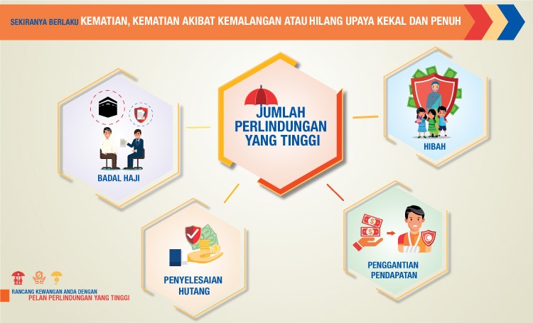 - untuk membantu melangsaikan komitmen kewangan yang tinggi seperti pembiayaan agar keluarga anda tidak terbeban.