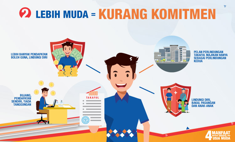 Tetapi itu tidak bermakna anda tidak perlu memikirkan untuk mendapatkan perlindungan Takaful sekarang, anda sebenarnya akan dapat menikmati banyak kelebihan takaful jika anda menyertai di usia muda. Ini kerana ianya adalah salah satu perkara yang perlu anda tambahkan di dalam senarai rancangan kewangan anda. Semakin cepat anda menyertai pelan Takaful, semakin banyak faedah dan kelebihan takaful yang anda akan nikmati. Ketahui 4 manfaat mendapatkan perlindungan Takaful ketika di usia muda.
