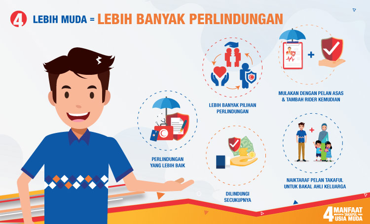 Tiada sesiapa pun yang suka fikirkan tentang kematian dan penyakit, terutamanya ketika anda masih muda dan sihat. Tetapi apabila anda menyertai perlindungan Takaful, lebih awal anda menyertai, lebih banyak manfaat yang dapat anda nikmati. Ianya jauh lebih murah untuk mendapatkan perlindungan hari ini, daripada di masa hadapan apabila anda mempunyai keluarga yang harus ditanggung.