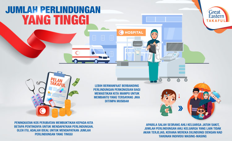 Peningkatan kos perubatan membuktikan kepada kita betapa pentingnya untuk mendapatkan perlindungan. Oleh itu, adalah ideal untuk mendapatkan jumlah perlindungan yang tinggi bagi perlindungn Takaful perubatan. Apabila setiap ahli keluarga menyertai dalam Takaful perubatan keluarga, had tahunan keseluruhan tidak akan dikongsi. Ini bermaksud, apabila salah seorang ahli keluarga jatuh sakit, jumlah perlindungan untuk keluarga tidak akan terjejas, kerana mereka dilindungi dengan had tahunan individu masing-masing.