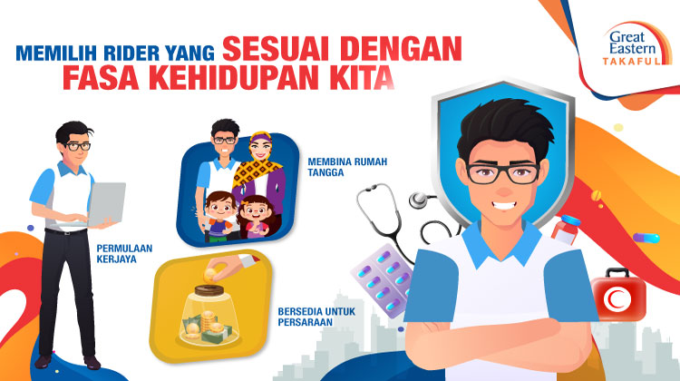Bagaimanakah kita, sebagai peserta Takaful memastikan perlindungan kita cukup pada setiap fasa kehidupan? Keperluan kita berbeza mengikut peredaran fasa kehidupan, jadi mari kita lihat apakah rider-rider yang dapat membantu memberikan perlindungan yang lebih baik dan menyeluruh.