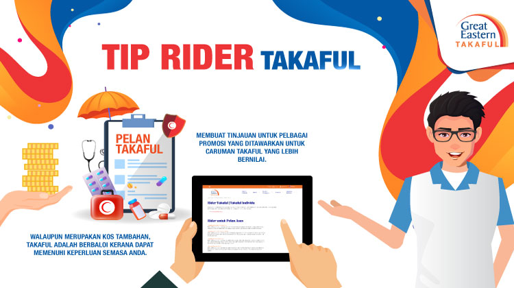 Perlindungan Takaful sangat penting dalam kehidupan kita. Walau bagaimanapun, kita mungkin akan menyedari bahawa perlindungan Takaful asas tidak mencukupi bagi menampung cara hidup kita. Kekurangan ini boleh dielakkan dengan menambah rider Takaful. Apakah rider Takaful? Rider Takaful merupakan satu pelan tambahan yang menawarkan manfaat dan perlindungan tambahan yang pelan asas anda tidak lindungi. Terdapat pelan Takaful yang dilengkapkan dengan rider dalam pakej; malah, terdapat juga situasi yang membenarkan kita untuk memilih rider yang bersesuaian dengan keperluan kita. Kita juga boleh memilih rider yang sesuai dengan fasa kehidupan kita, sama ada pada fasa permulaan kerjaya, fasa membina rumah tangga, atau fasa persaraan.