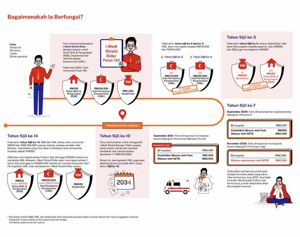 Tertakluk pada terma & syarat. Maklumat di atas adalah untuk maklumat am sahaja dan bukanlah satu kontrak takaful keluarga. Anda dinasihatkan untuk merujuk Ilustrasi Manfaat, Risalah Pemberitahuan Produk dan contoh Sijil bagi mendapatkan maklumat terperinci berkenaan ciri penting dan manfaat pelan sebelum menyertai pelan ini.