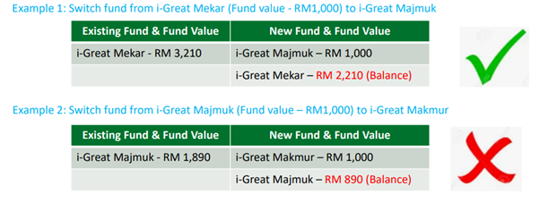Fund Switch is an exercise where you can switch your existing fund to another available fund based on your investment desired/planning.