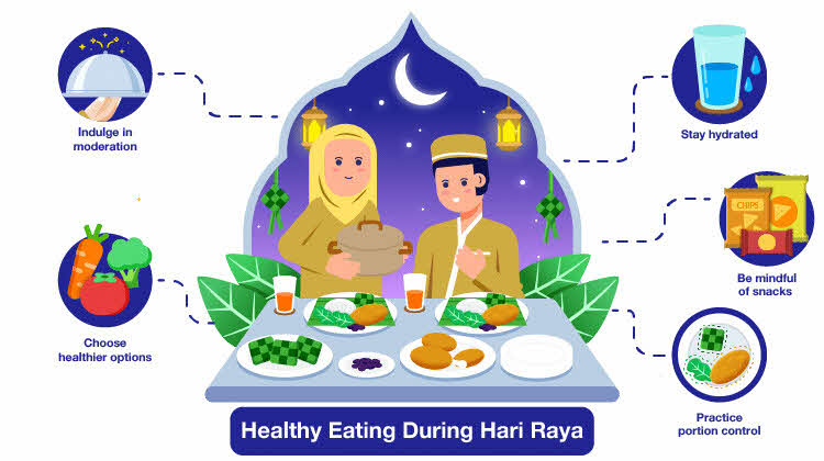 Hari Raya Aidilfitri marks the end of the fasting month of Ramadan when Muslim communities all over the world celebrate this. Making smart choices on healthy foods is important to avoid overeating unhealthy foods. Here are some tips on how to eat healthily during Hari Raya.