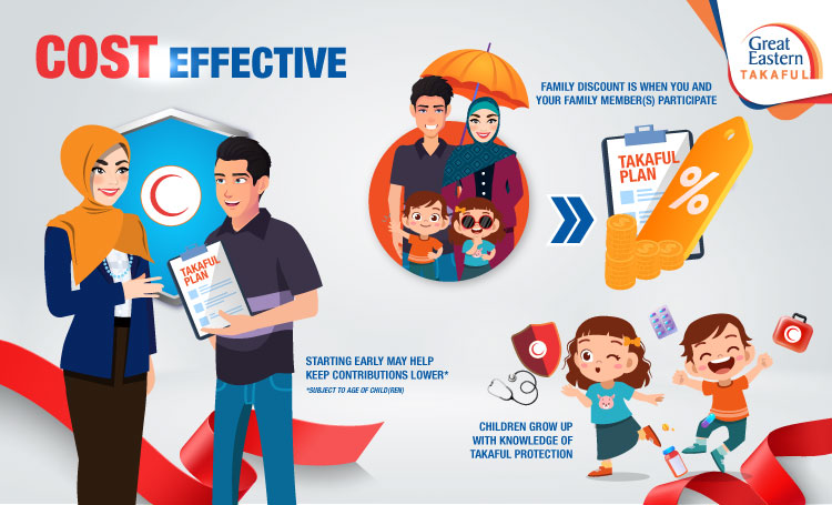 As it is with any Takaful protection, starting early could benefit you in the long run as the contributions may be cheaper compared to when you start later on in your family life. This however, may vary depending on the age of your child(ren). Regardless, they would also then grow up with the knowledge of Takaful protection. Therefore, participating in a family medical Takaful would attribute to great savings to you and your family. What helps even more is when a family discount is given for when you and your family member(s) participate.