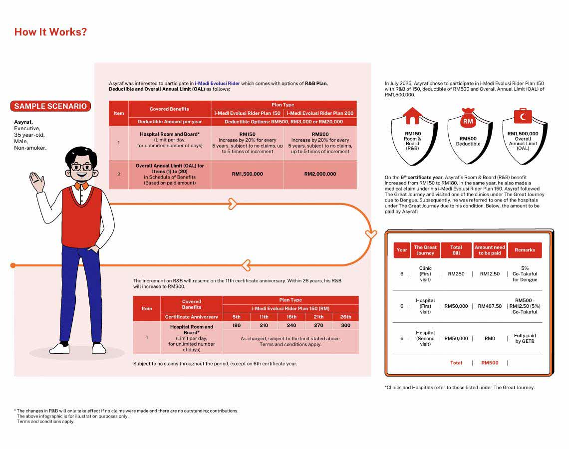 Terms and conditions apply. The info above merely provides general information only and is not a contract of family Takaful. You are advised to refer to the benefit illustration, Product Disclosure Sheet and sample certificate for detailed features and benefits of the plan before participating in the plan.